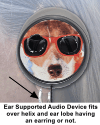 A wired or bluetooth Ear Audio Device emits a vibrating wave